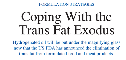 Hydrogenated oil will be put under the magnifying glass now that the US FDA has announced the elimination of trans fat from formulated food and meat products. [...]