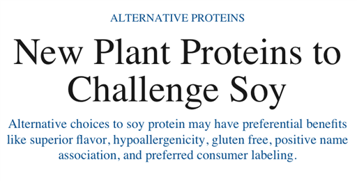 Alternative choices to soy protein may have preferential benefits like superior flavor, hypoallergenicity, gluten free, positive name association, and preferred consumer labeling. [...]